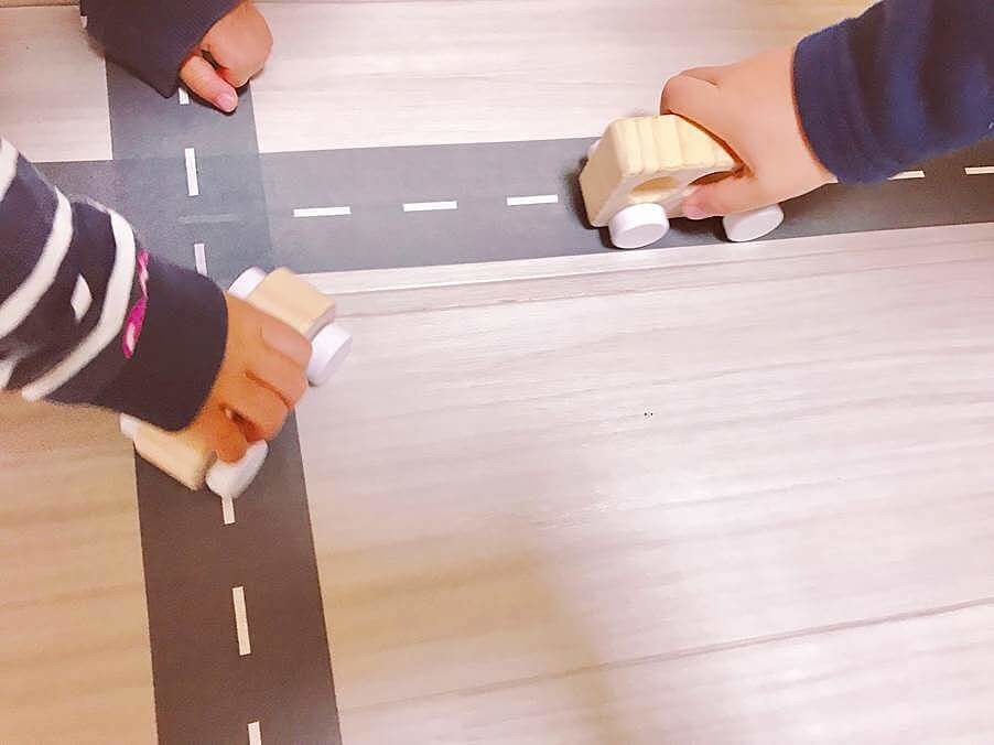 フライングタイガーで発見した道路模様のマスキングテープを貼ったら、もう子どもは大興奮!