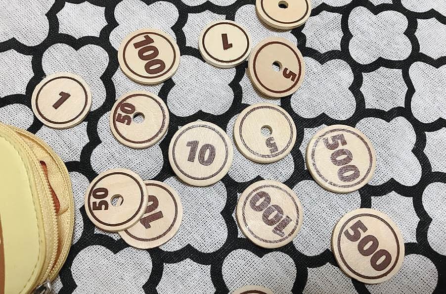 種類は1円玉・10円玉・100円玉がセットになったものと、5円玉・50円玉・500円玉がセットになったものの2種類。なんと硬化全種類のラインナップなのでおままごとをしながらお金の勉強もすることができます。