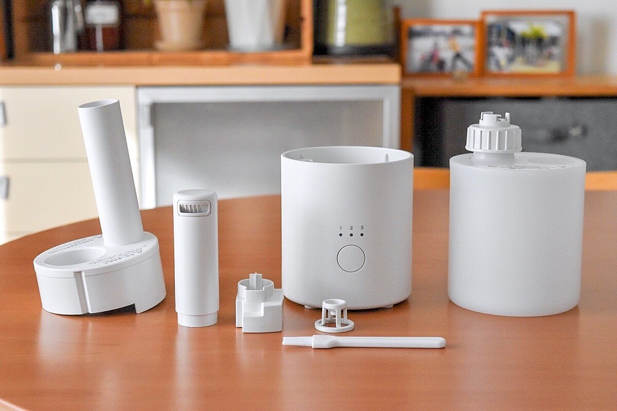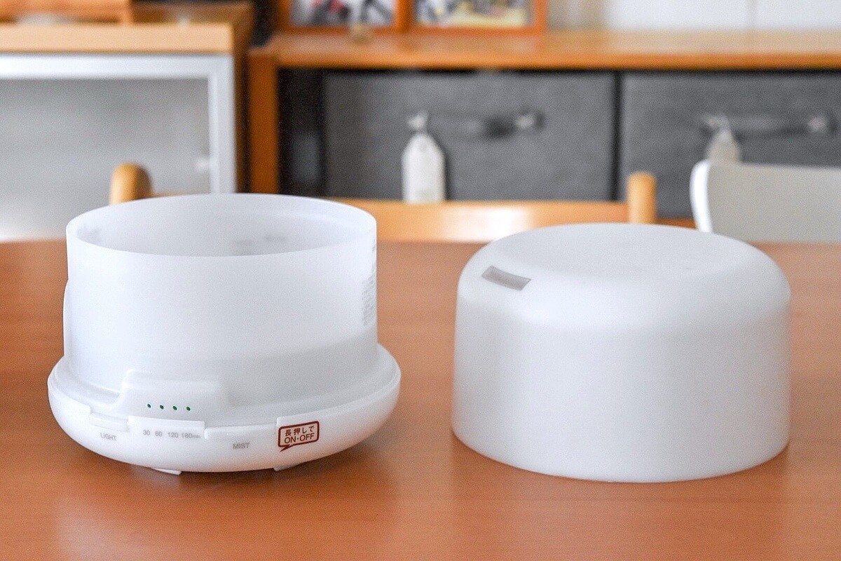 一方、超音波アロマ加湿器はパーツが細かくて多め。構造もアロマディフューザーに比べると複雑なので、お手入れが面倒です。
