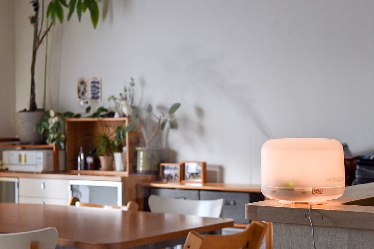 そのうち、わが家で使っているのは超音波うるおいアロマディフューザーと超音波アロマ加湿器の2種類です。