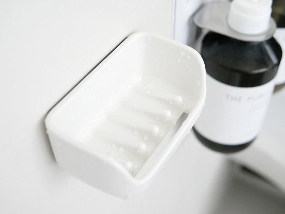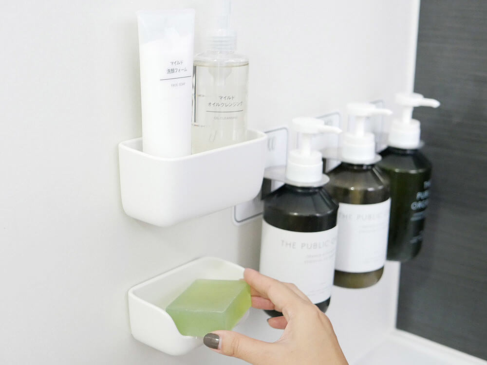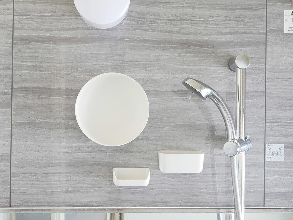 バスタイムに欠かせない石鹸や洗顔などを、浴室の壁面に浮かせて収納できる「小物入れ」と「石鹸置き」をご紹介します。