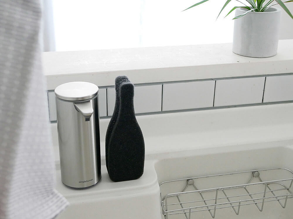 スポンジは立たせることが出来るので、シンクの隅に自立して見た目もスッキリ。