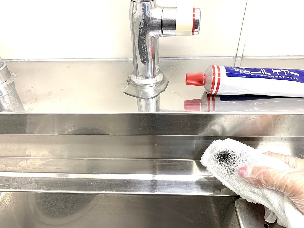 ステンレス製の蛇口であれば一緒に磨けるので、シンクが見違えるほどピカピカになりますよ。 ただし、鏡面仕上げなど磨き傷が目立ちやすいシンクもあることと、キッチンによって素材は異なるため、目立たない場所で試してから磨くようにしましょう。コーティングなどの表面処理をしたものは、使用に適しませんので気をつけてくださいね。