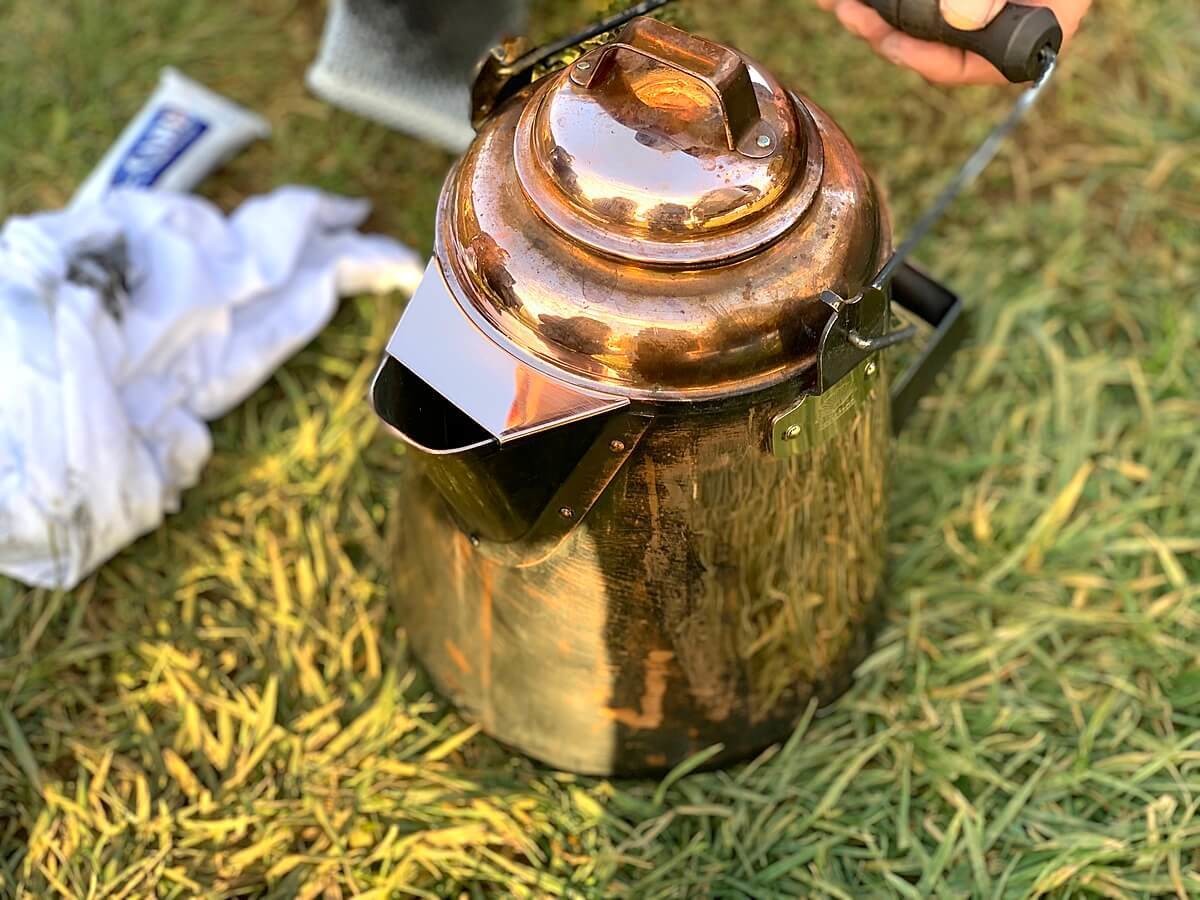 ケトルのふたと注ぎ口の上が鏡のようになっているのがおわかりでしょうか。人が映るくらいピカピカになりました。