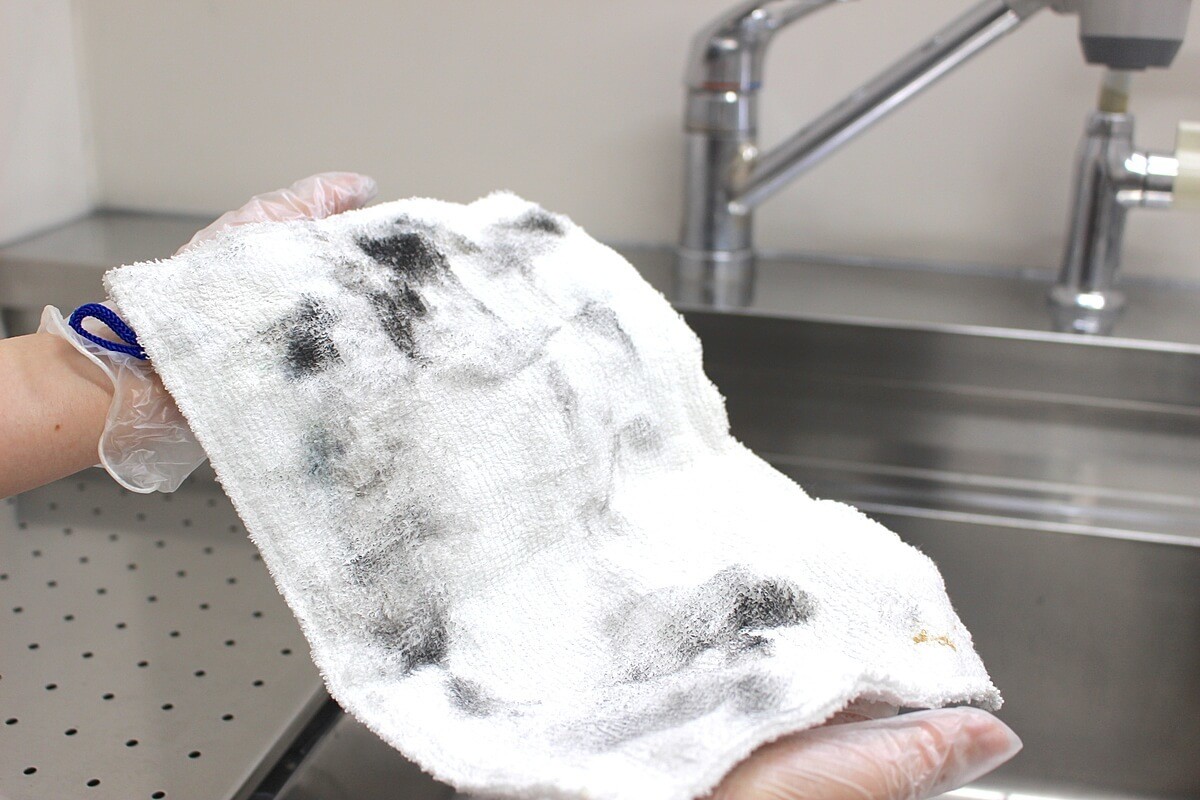 汚れがとれたら、拭き上げ用の乾いた布でピカールを拭き取ります。 このとき拭き残しがないよう、しっかり拭き取ることを心掛けましょう。