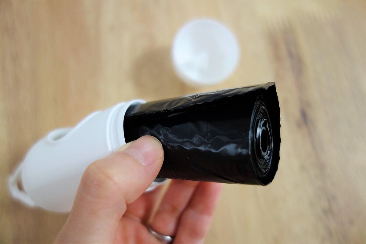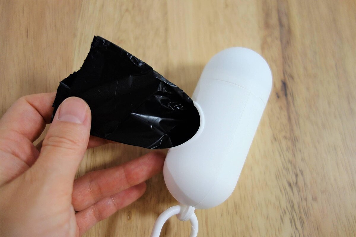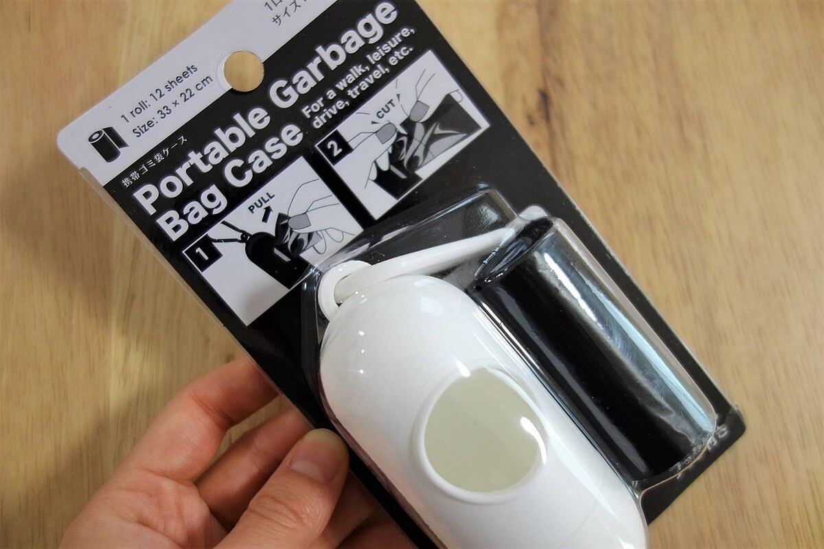 便利グッズその1は、携帯ゴミ袋ケースです。