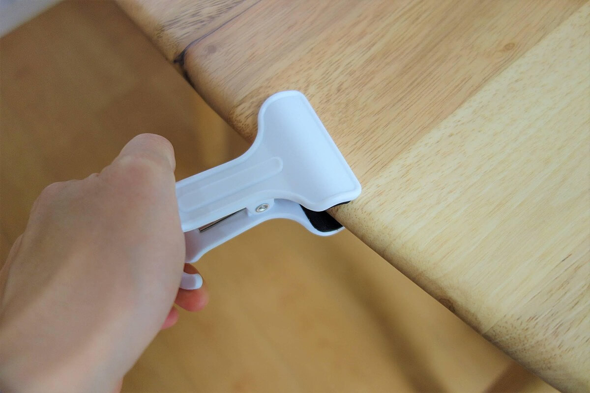 クリップは最大1.8cmほど開くので、1.8cm以内の天板やポールであれば、どこでも挟めて使えるので何かと便利です。