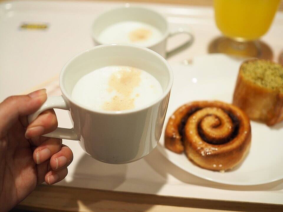 イケアレストラン&カフェでは朝から焼きたてのパンが充実していて、しっとり甘いシナモンロールや、カリッと香ばしいガーリックトーストなど、様々なパンを楽しむことができます♪