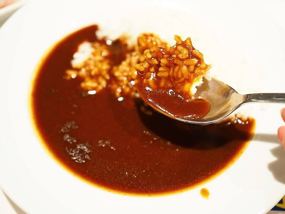 具が入っていないシンプルなカレーで、大きなお皿にたっぷりのご飯とカレールーが楽しめます。