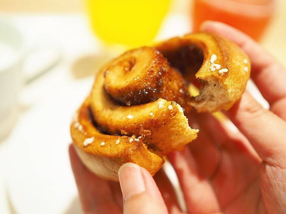 パン生地にバターたっぷりのシナモンフィリングが練りこまれているので、甘党さんも大満足の1品です♪