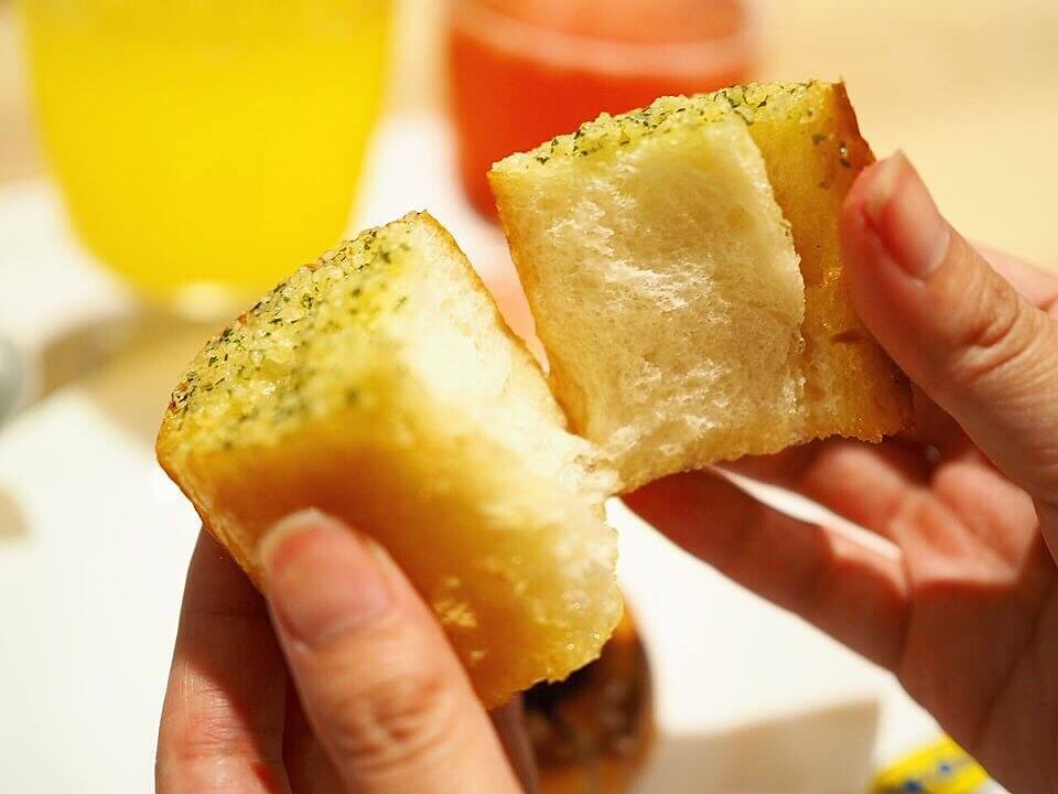 続いては、厚めにカットされた断面にたっぷりガーリックバターが染みこんだ濃厚バケット。