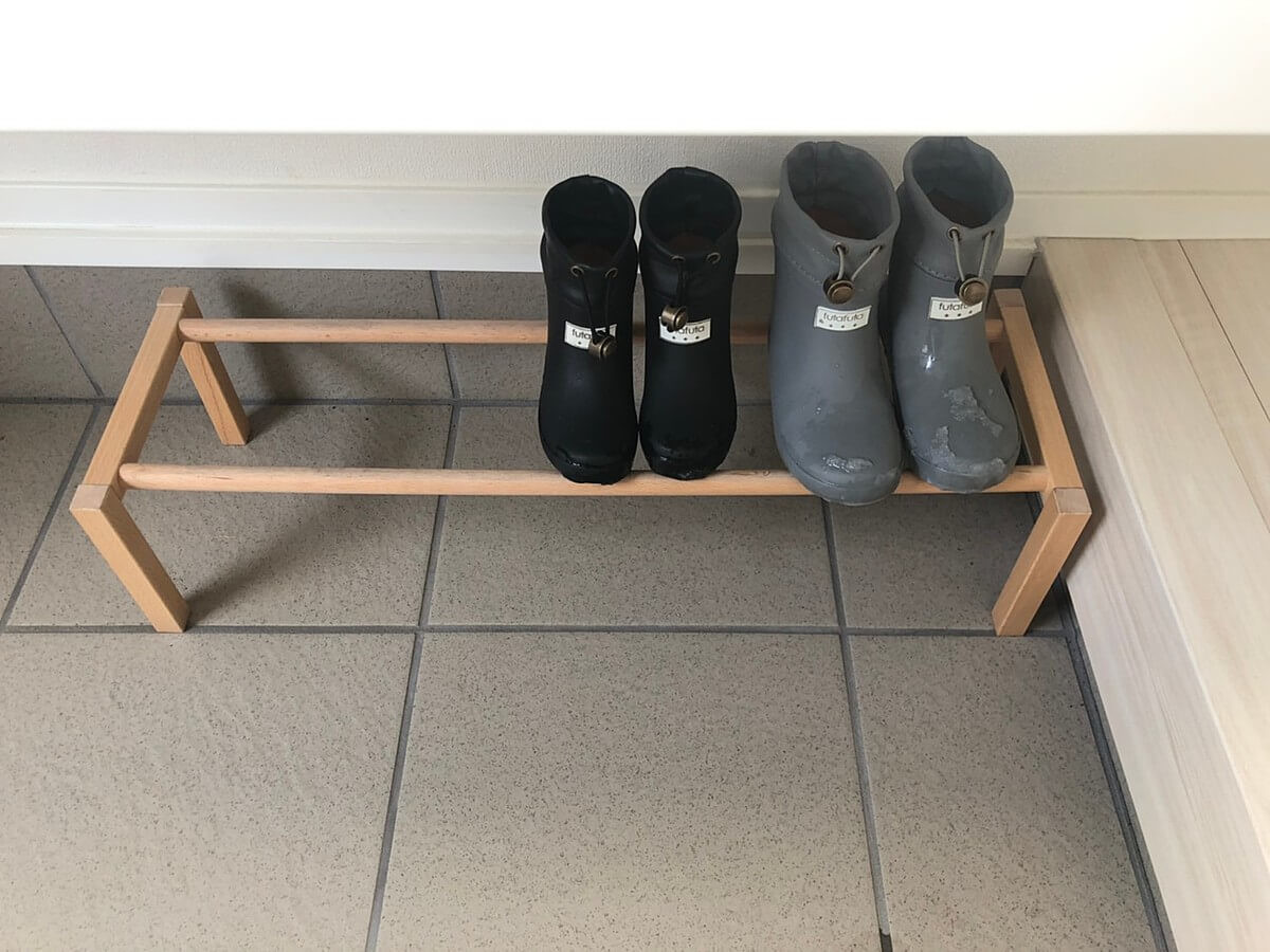 濡れた靴はシューズラックにのせて浮かせて乾かします。