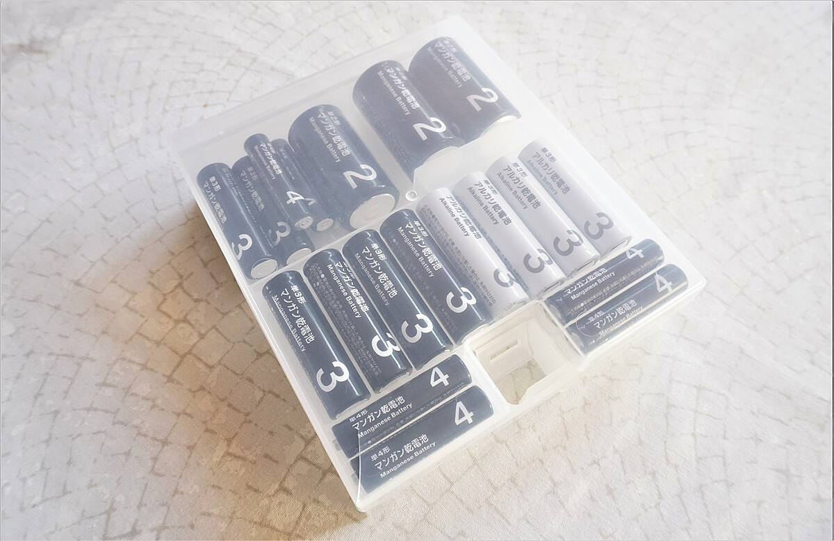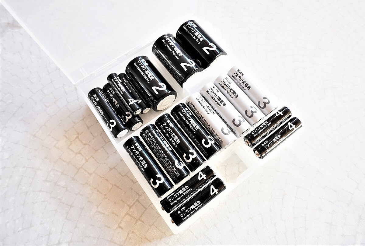 こちらの乾電池救急箱を使って乾電池を収納すると、すっきりコンパクトに乾電池を収納しておくことができます。
