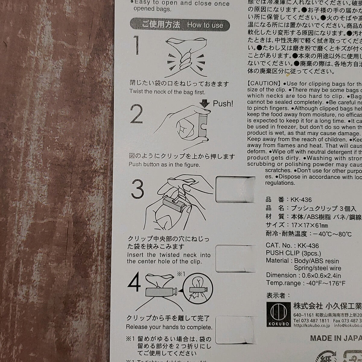 バッグ・クロージャーと同じ要領で袋留めをするタイプのクリップです。