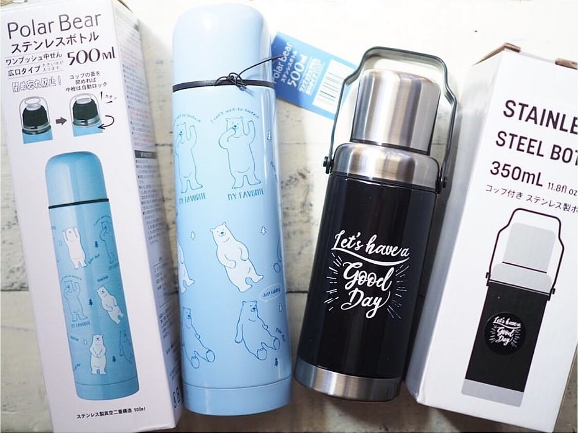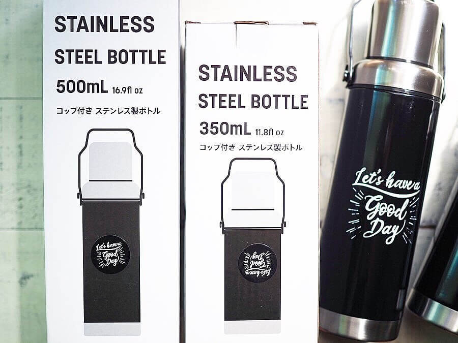▲コップ付きステンレス製ボトル 350ml 500円/500ml 700円