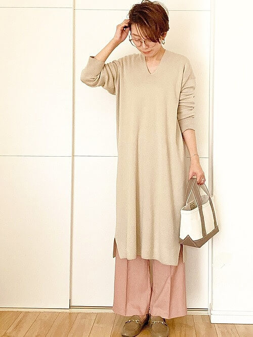 【ピンク】ニットワンピースと合わせた大人カジュアルコーデ