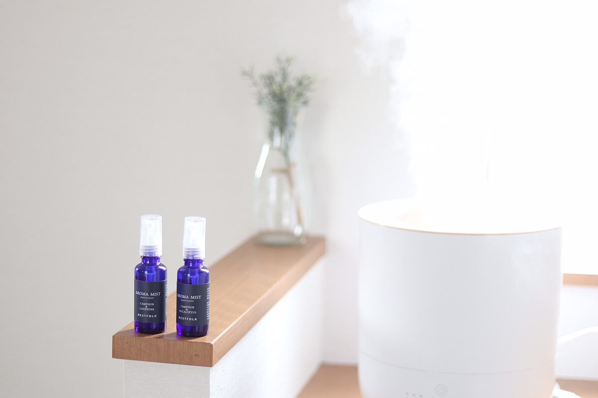 加湿器にアロマを入れて、手帳や家計簿を見ながら寝室のプチ書斎で一息。この時間がとても好きです。