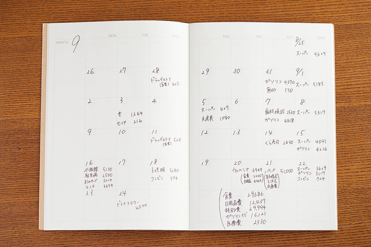 ゆきこさんも、最初は市販の家計簿を使っていました。ただ費目分けが細かくて、時間もかかり、ストレスに感じて続きませんでした。