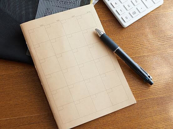 これは市販のカレンダーとは違い、自分で日付を記入するため、「給料日をスタートにして、1カ月分を見開きで見る」ことができます。
