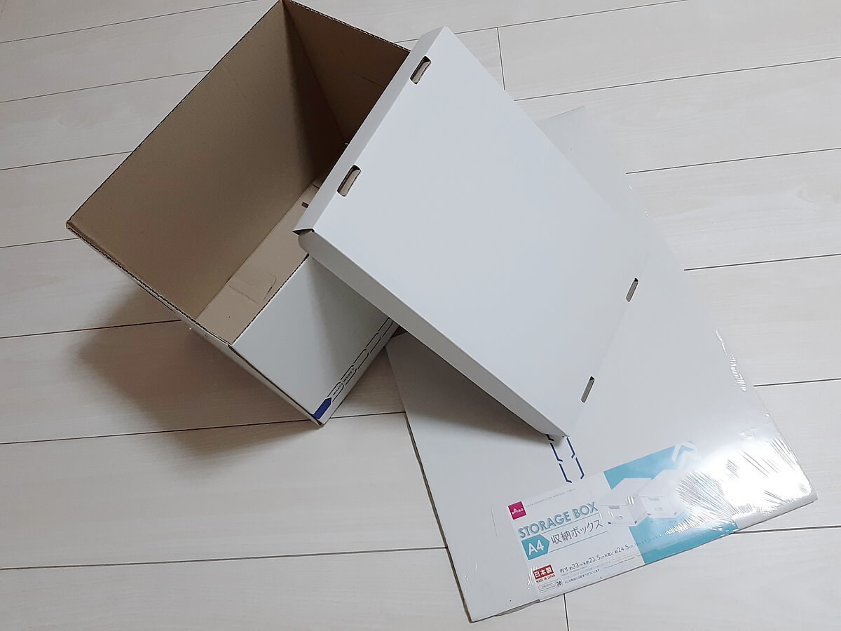 とりあえず保管用のA4サイズのふた付きボックス