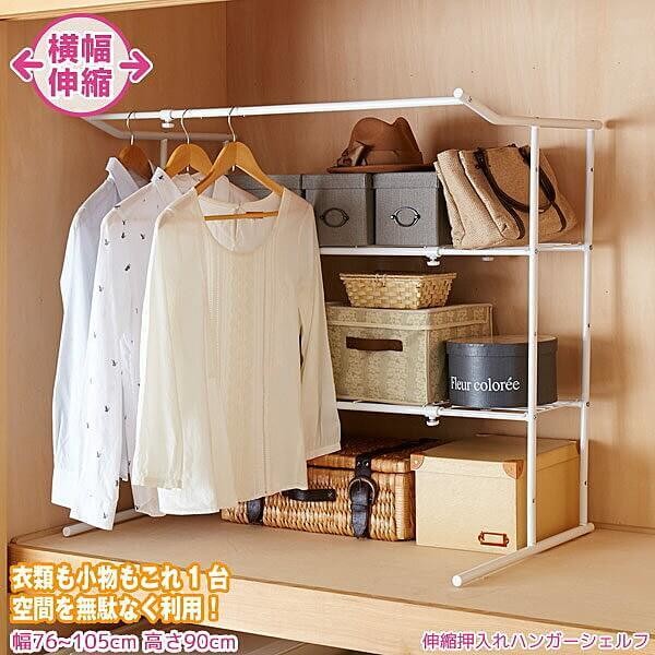 インスタグラムで多く見かけたのが、棚がついたタイプの押し入れ用ハンガーラックでした。服を掛ける以外にも、色々なものを棚に収納したい方におすすめです。