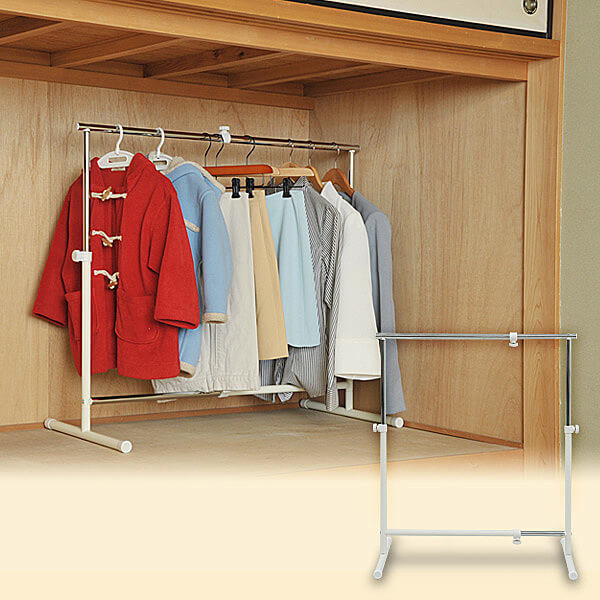 洋服を掛ける用途だけなら、シンプルな押し入れ用ハンガーラックがおすすめ。山善の押入れハンガーラックは、縦にも横にも伸縮できるので、使い勝手は抜群です。