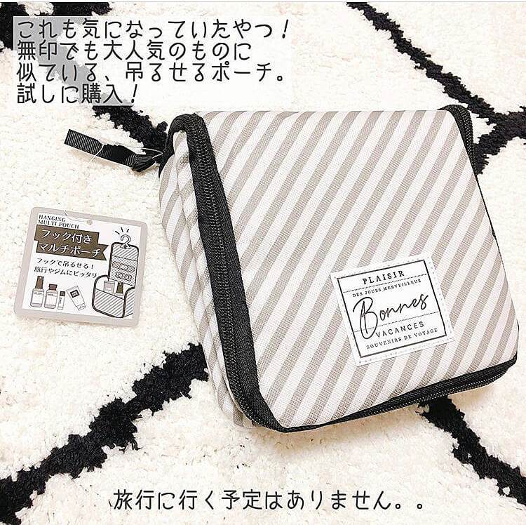 ここからはインスタグラムで見つけた、吊るすタイプのトラベルポーチを紹介します。洗面道具などの持ち運びには、吊るすタイプが便利ですよ。