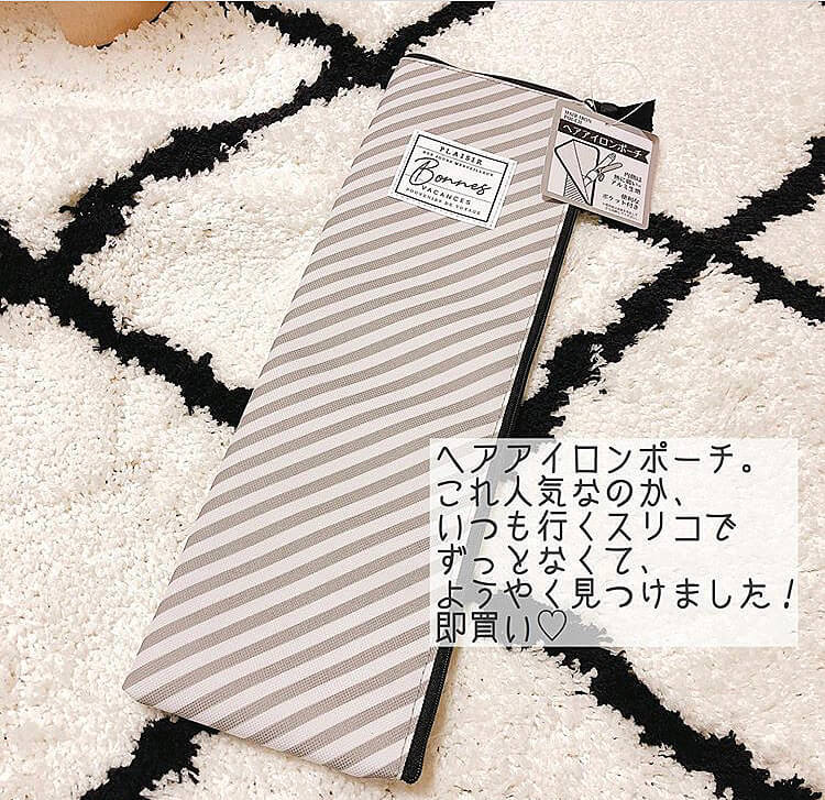 また、スリーコインズでは、おしゃれなヘアアイロンポーチも販売されています。こちらのポーチは内部がアルミになっているため、少し熱い状態でも収納することができます。