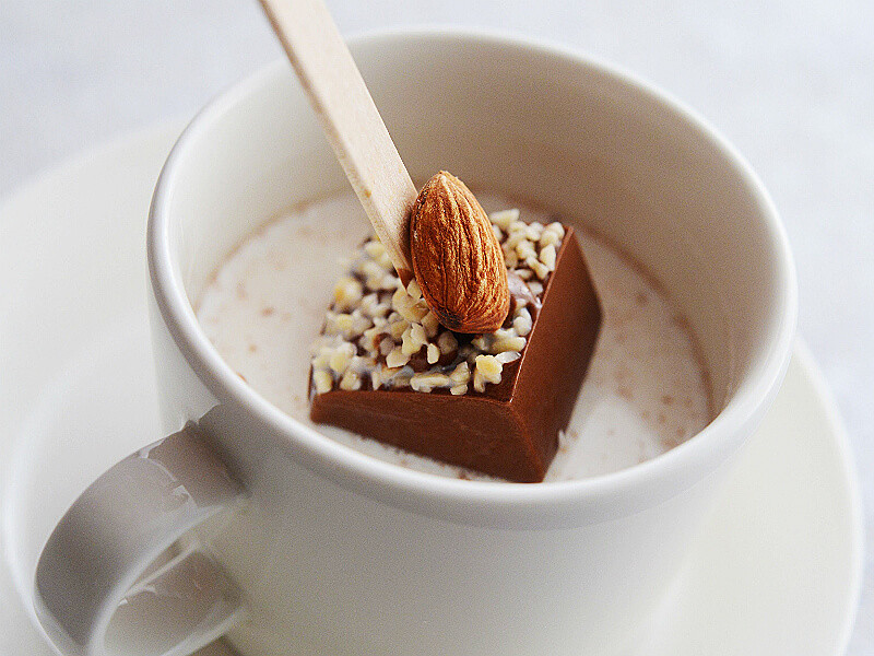 シンプルで王道の組み合わせ=チョコとアーモンド。食後のデザート感覚で、男性にも飲みやすくてオススメです。