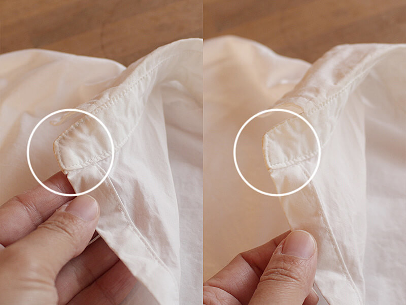 黒ずみが薄くなりました。またシャツ全体の白色がトーンアップした印象。