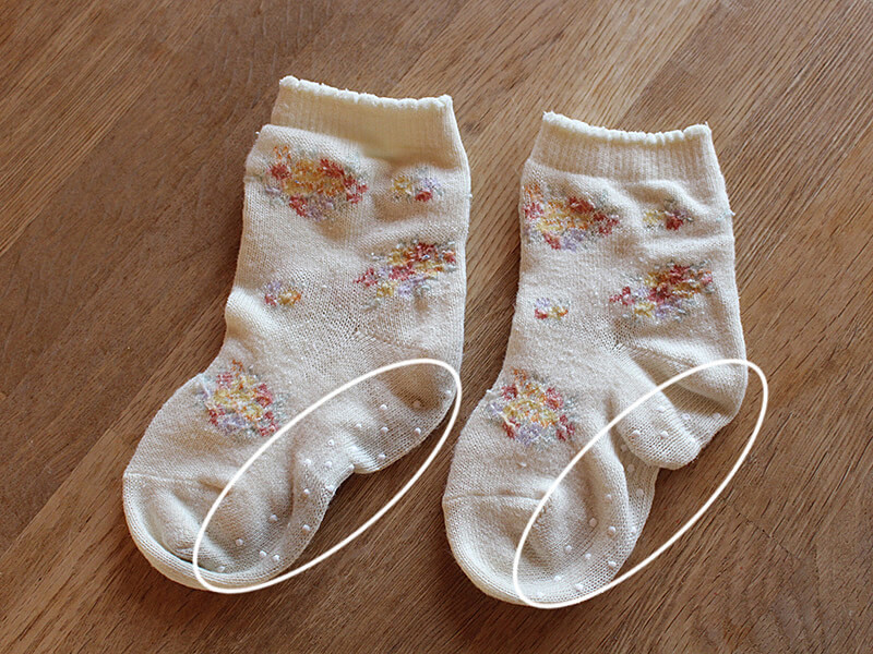 靴下は片方だけ洗って検証。これまで洗っても残っていた足裏の黒ずみが、ほとんど目立たない状態に。