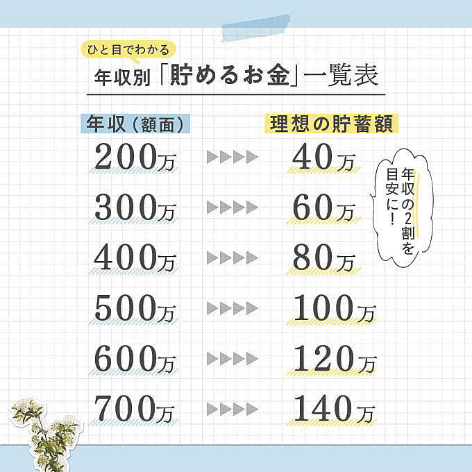 「目標の貯金額は、『年収(額面)の2割~3割』が一般的といわれているので、目安にするのもいいかもしれません。ただ家庭ごとに事情がちがうので、正解はありません。ただ最初から背伸びをした金額だと、続けるのが苦しくなるので、無理のない金額=『少し頑張れば、達成できそうな金額』を設定するのがポイントです」。