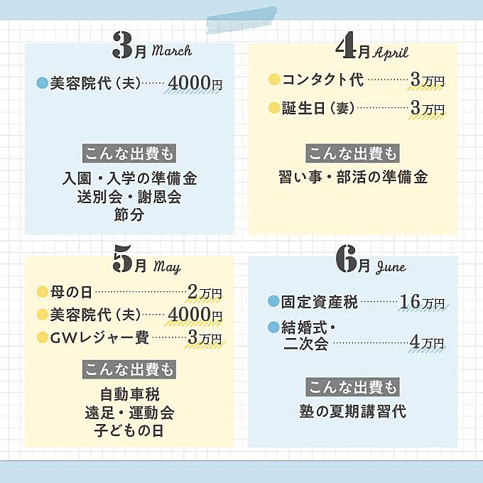 年間でかかる「特別出費」リスト(上半期1~6月)