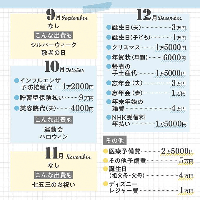 年間でかかる「特別出費」リスト(下半期7~12月)