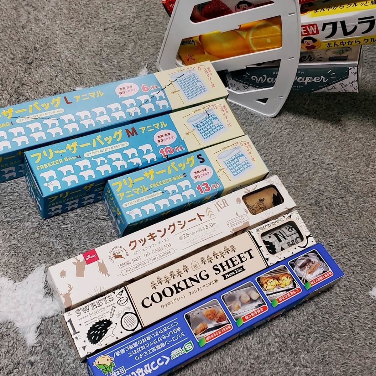コレに加え、2軍に位置する、食品収納などで大活躍してくれているスライド式のフリーザーバッグ3サイズ分と、お弁当の間仕切りで使用する大きめのクッキングシート。