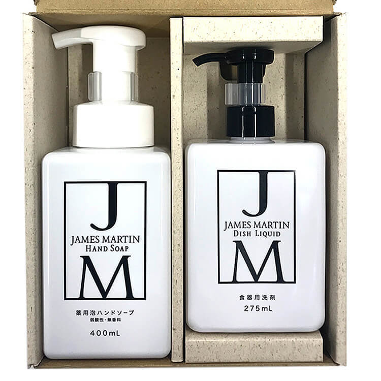 新築祝いやそのお返しの品物としても人気が高いジェームズマーティンのギフトセットです。 薬用泡ハンドソープと食器用洗剤がセットになっており、どちらもパッケージデザインがとてもおしゃれです。