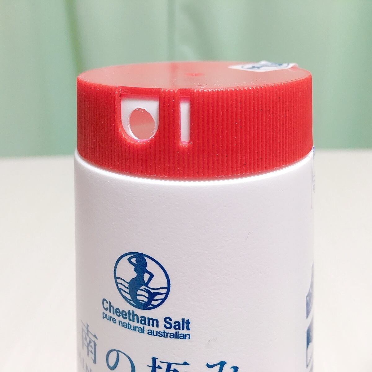 キャップを少し右に回すと穴が開いているのでそこから塩を出します。安定感のあるボトルなので、手のひらでボトルを押さえるように支えて、人差し指と親指でキャップをくるっと回せば、片手でも簡単に出すことができて便利です。