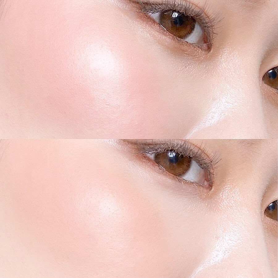チークの上からハイライトを乗せることもありますが、ハイライトもいらないほどの光沢感です。