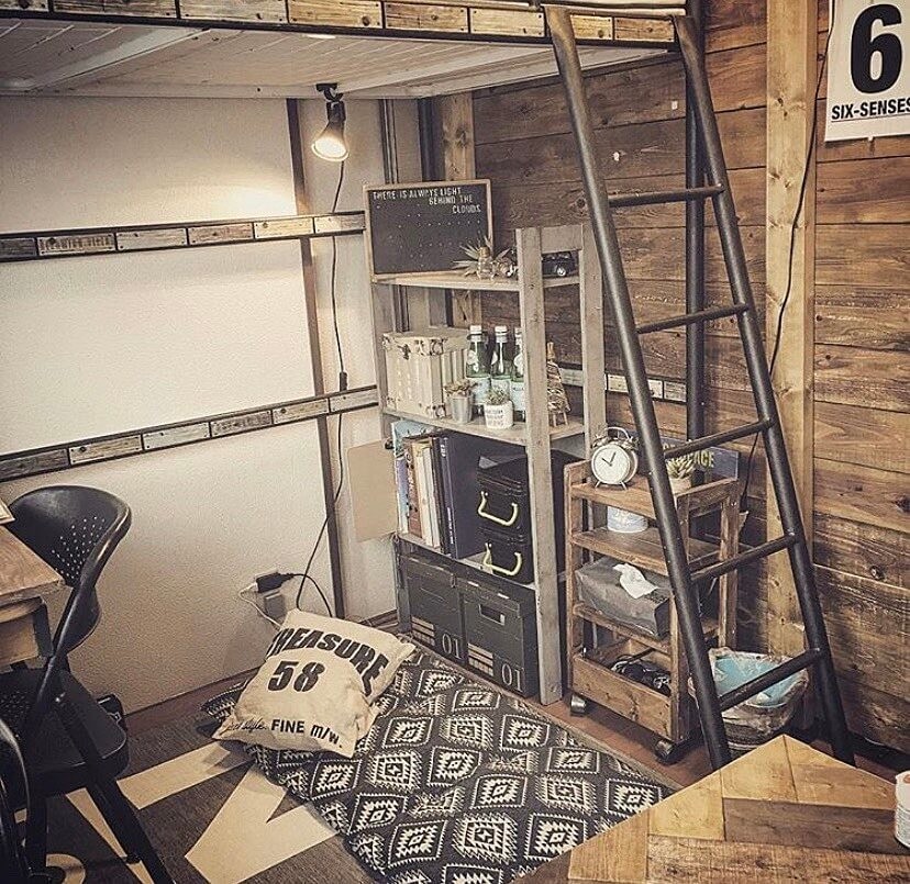 ロフトベッドを使い、デスクスペースをとれるようにしています。間仕切り壁の向こう側はプライベートなスペースなので息子もお気に入りみたいです。