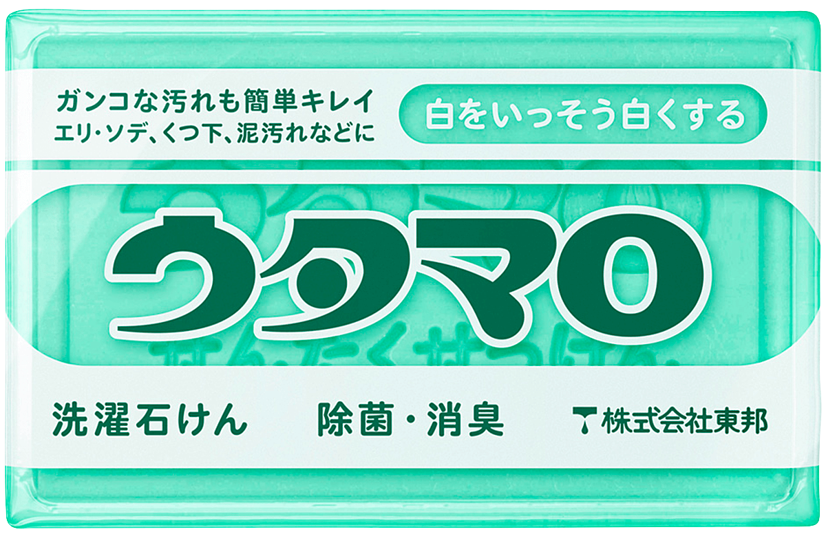 ウタマロ石けんは、通常の洗濯では落としにくいガンコな汚れ専用の石けんです。水に溶けやすく塗りやすい石けんで、汚れや生地になじみやすく、生地も傷めにくい石けんです。