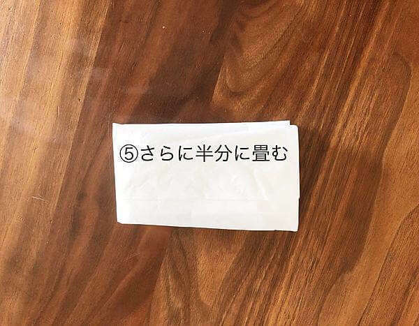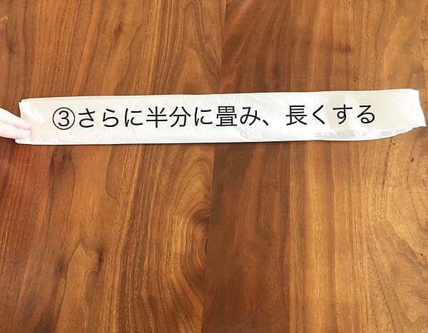 もう一度、縦に半分に折りたたみます。