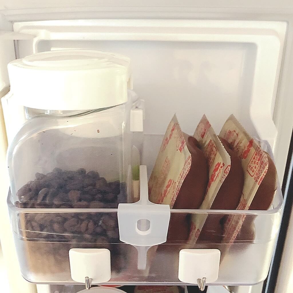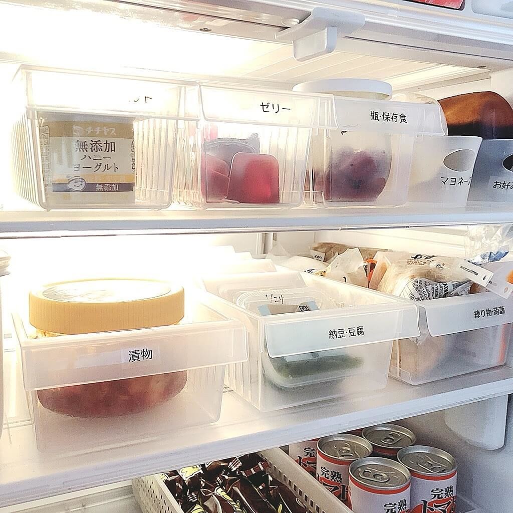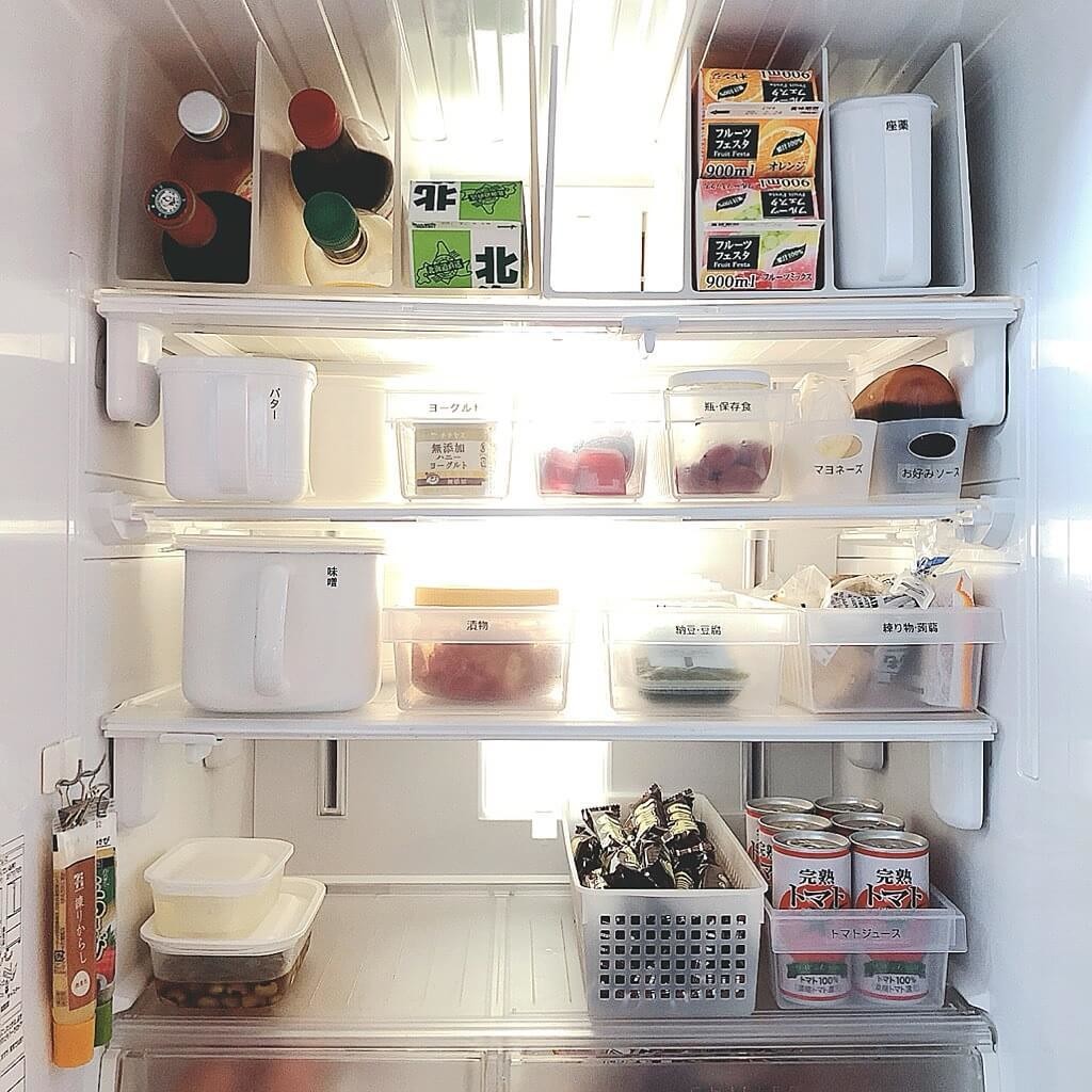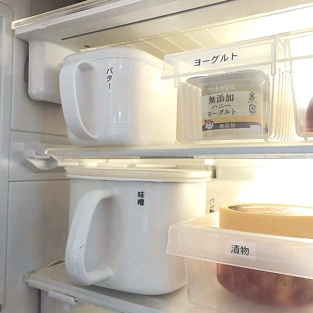 お味噌やバターなどの調味料や、梅干し・ジャムなどの保存食、納豆・豆腐・練り物・ヨーグルトなど、定番品の定位置を決めてしまいます。