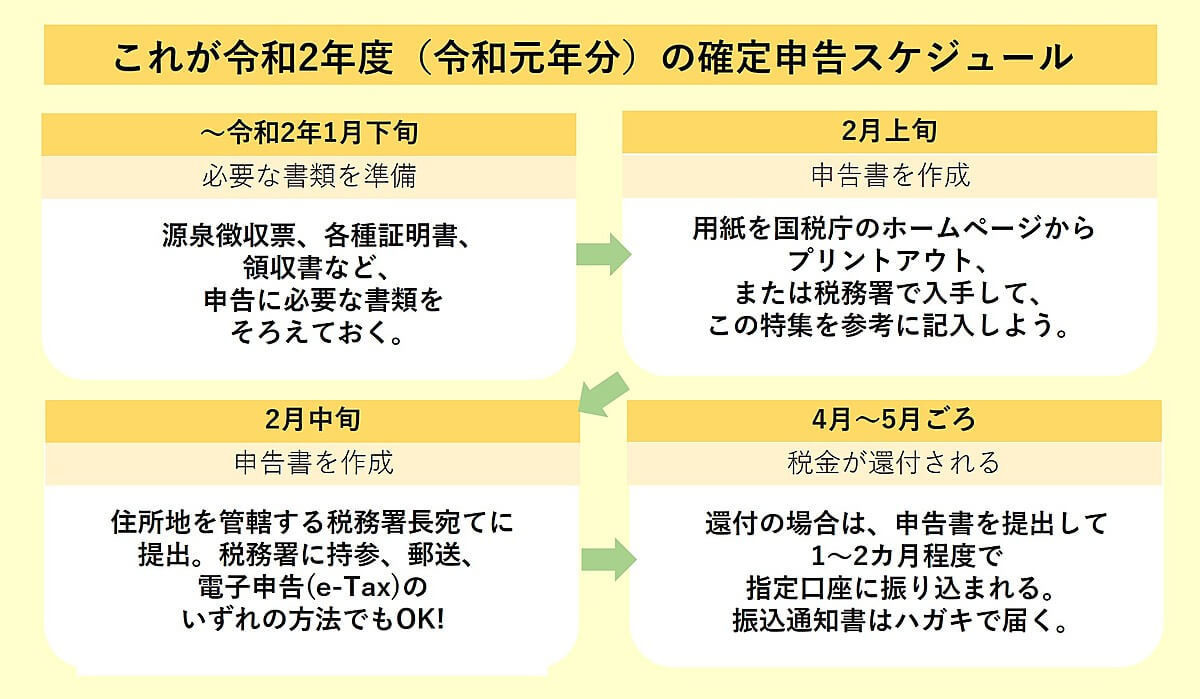 そこで今回、確定申告初心者の人や、期限間近に慌てて申告をしがちな人に向けて、「令和2年度の確定申告」のスケジュールと失敗しない段取りを徹底解説します!
