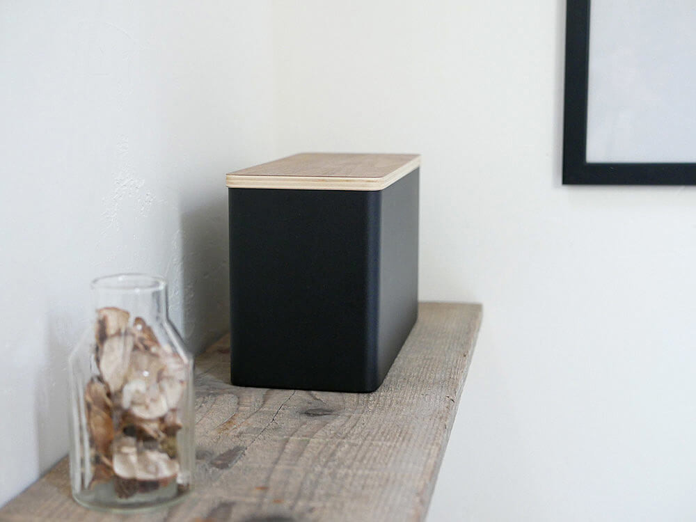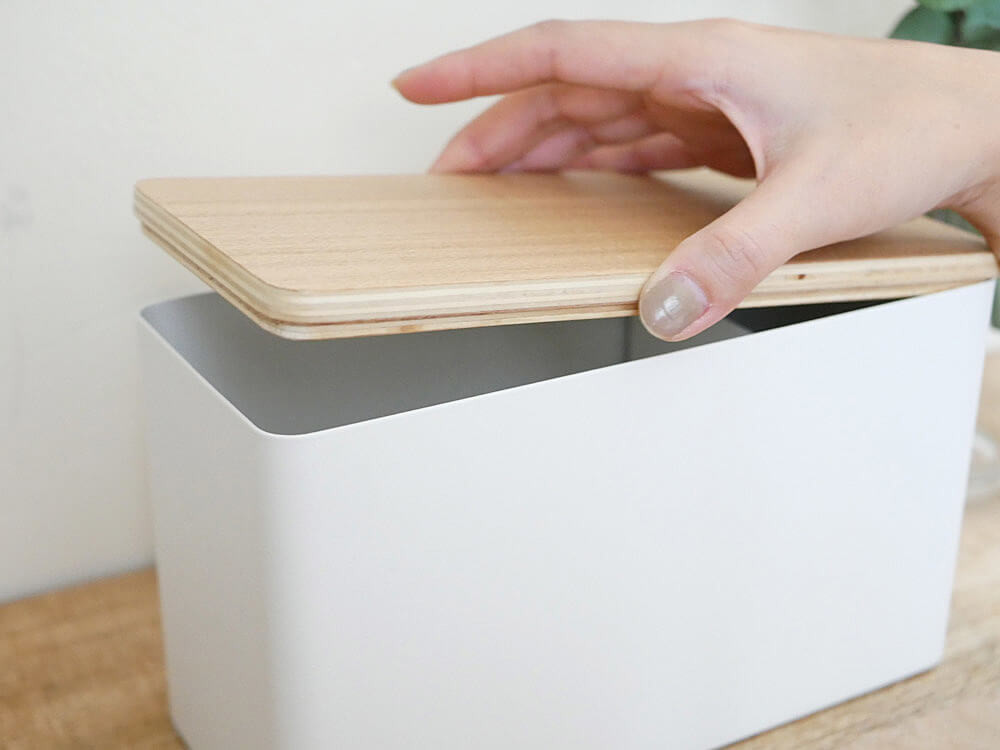 シンプルなスクエアフォルムに天然木の蓋が高級感もあり、出しっぱなしでもインテリアとして◎なところが嬉しいですね。