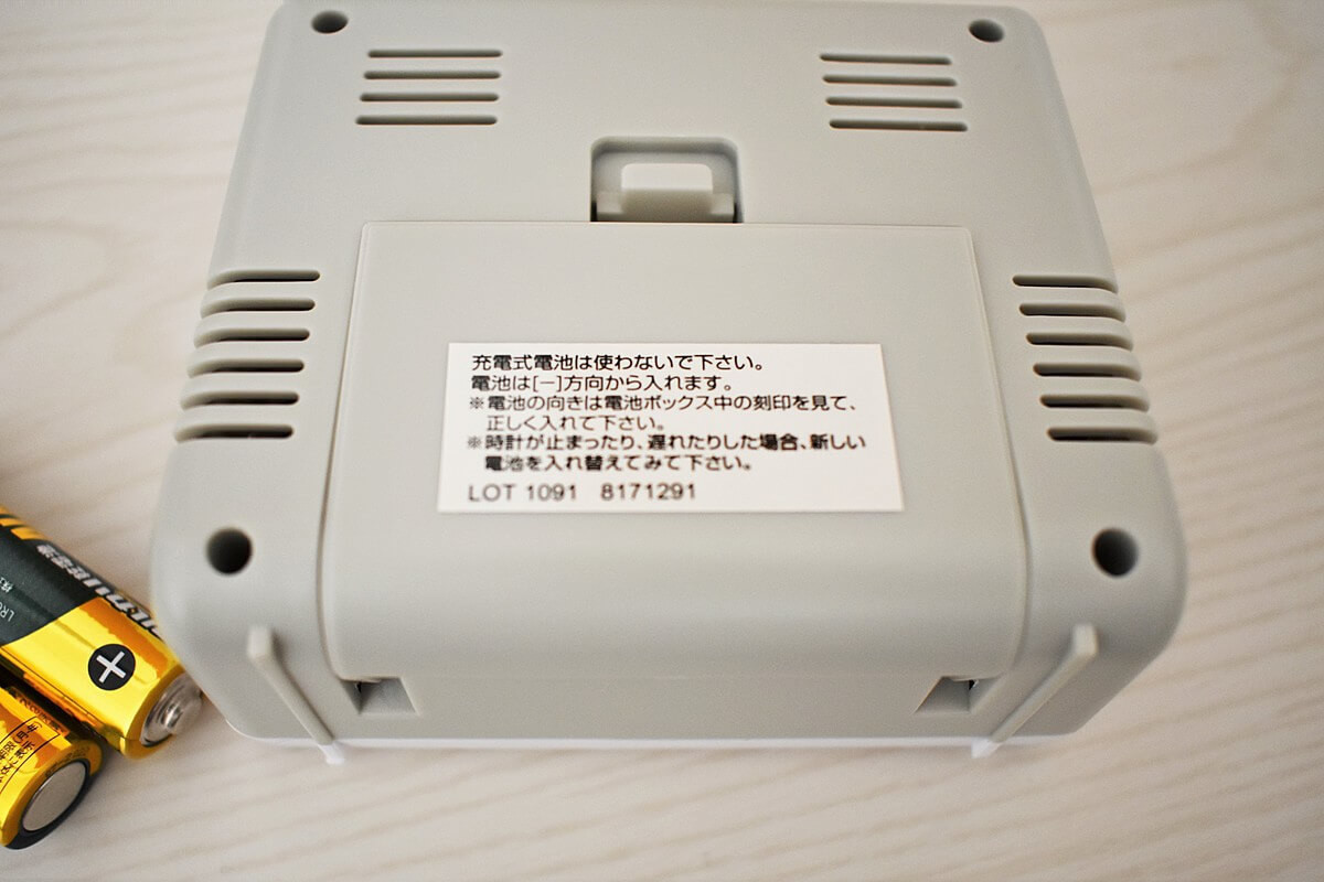 ▲「充電式電池は使用不可」と本体にも記載あり。