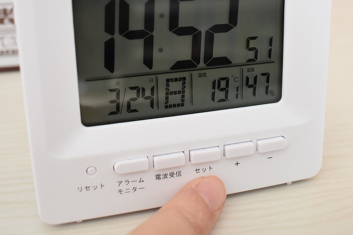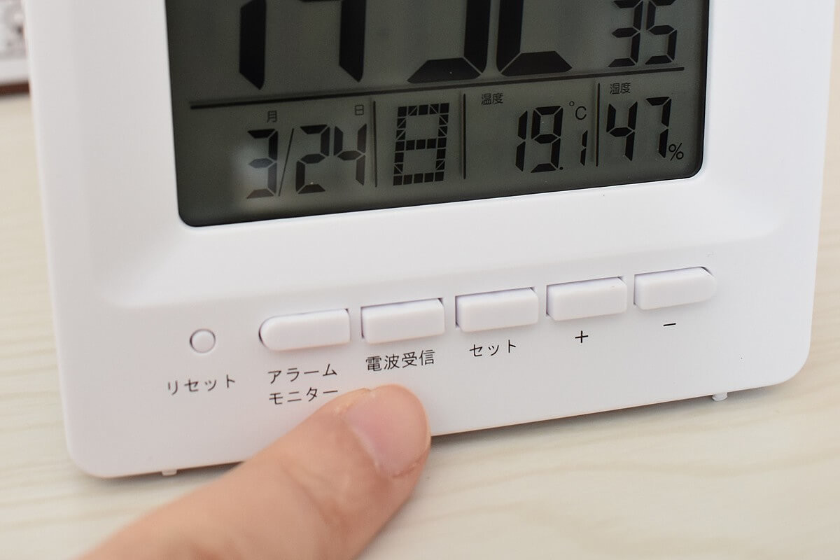 [電波受信]のボタンを押して自動受信を強制終了すれば、あとは[セット]ボタンを3秒押せば手動ボタンに切り替わりました。