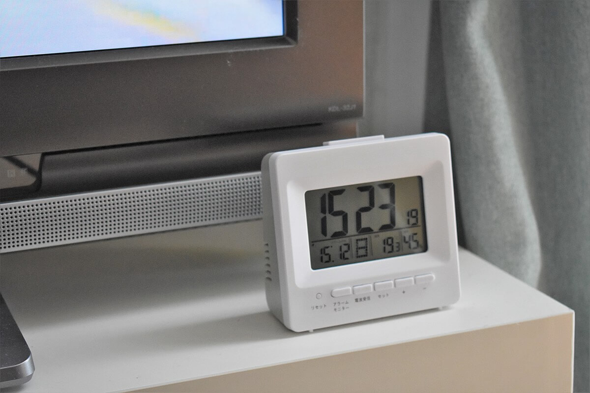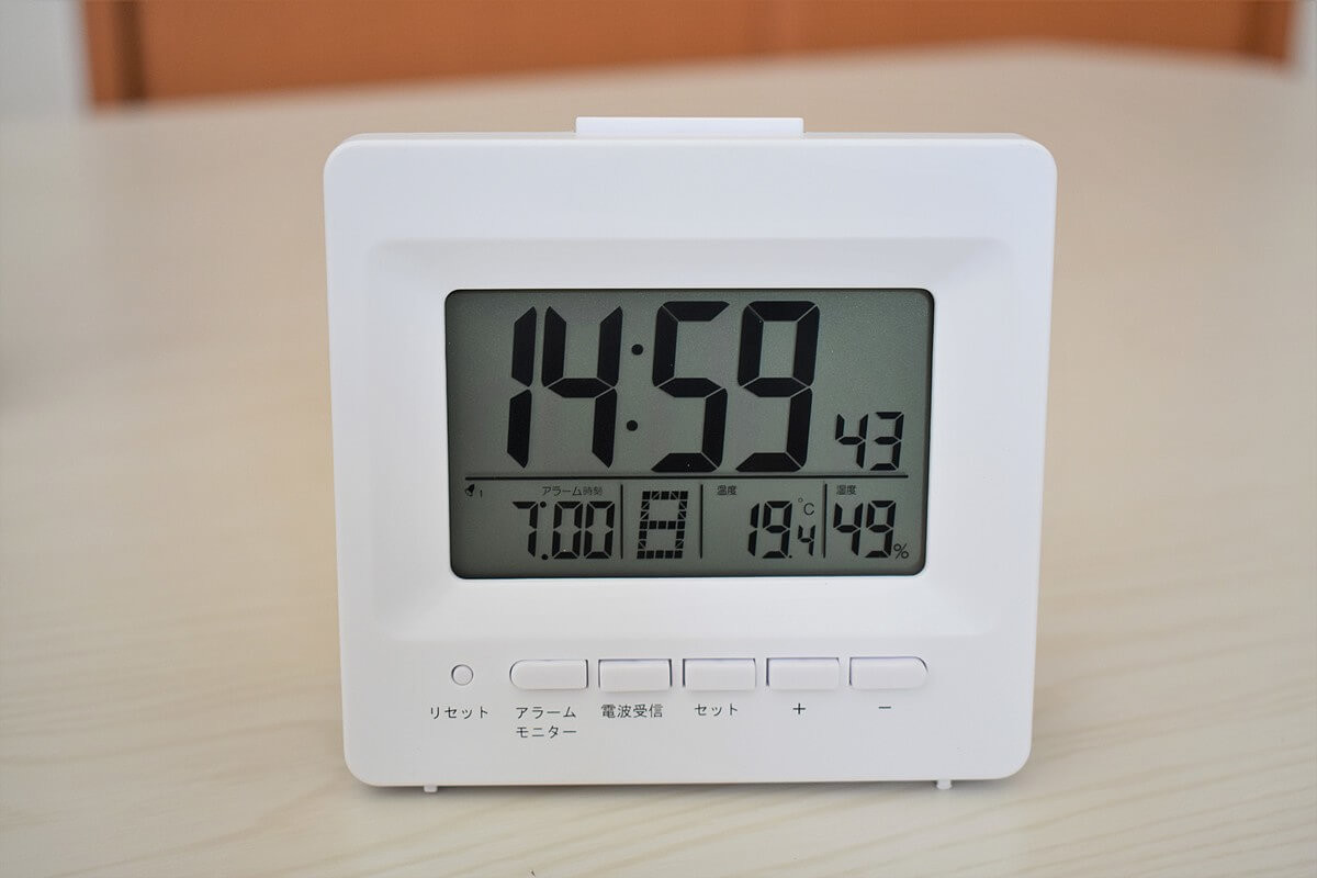 我が家はさっそく、この電波デジタル時計を「小学生用の目覚まし時計」「洗面所用の時計」として2台使用することに決定。
