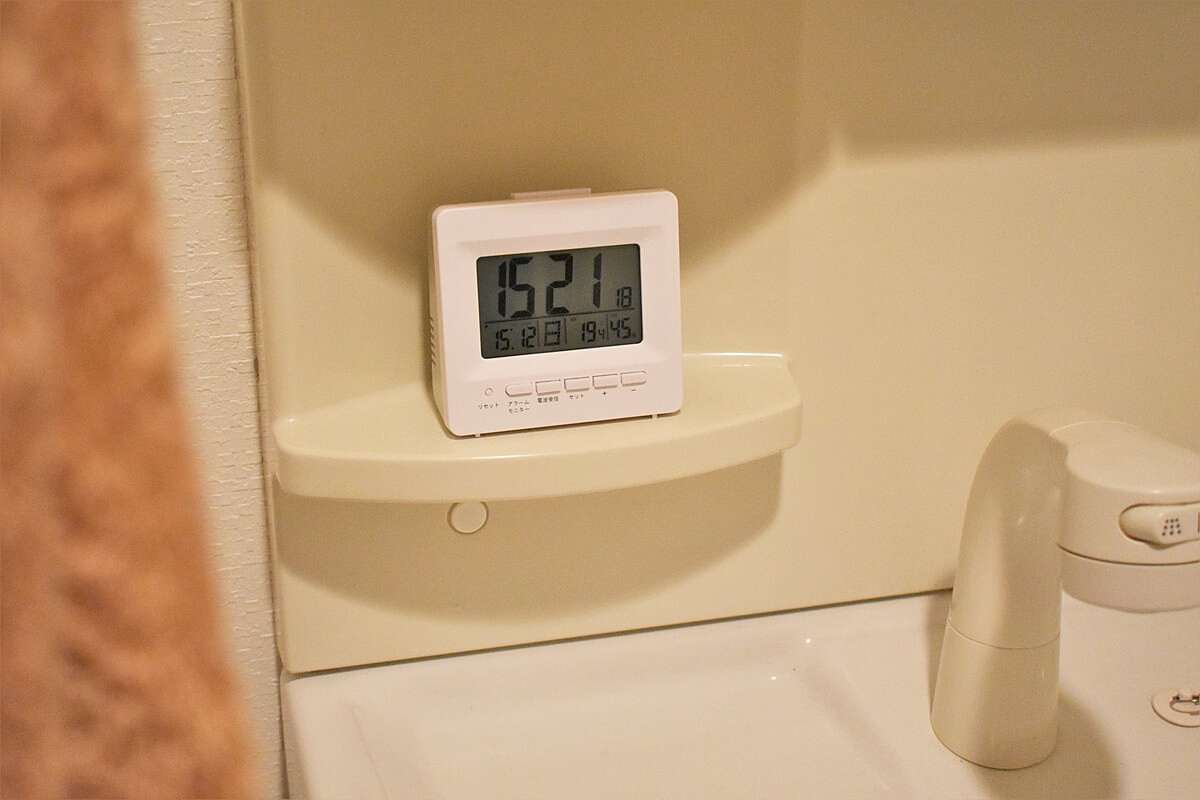 目覚まし時計として使用しない場合も、室温や湿度がわかるので、洗面所に置いても。