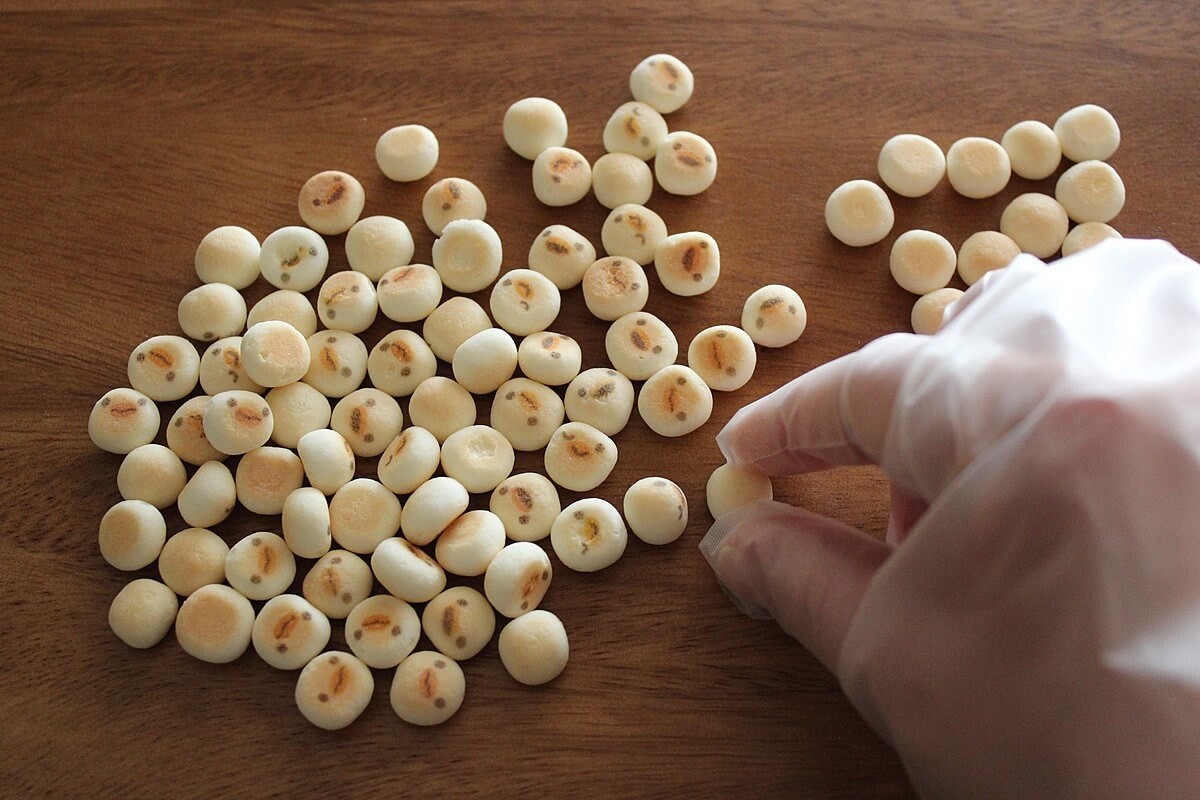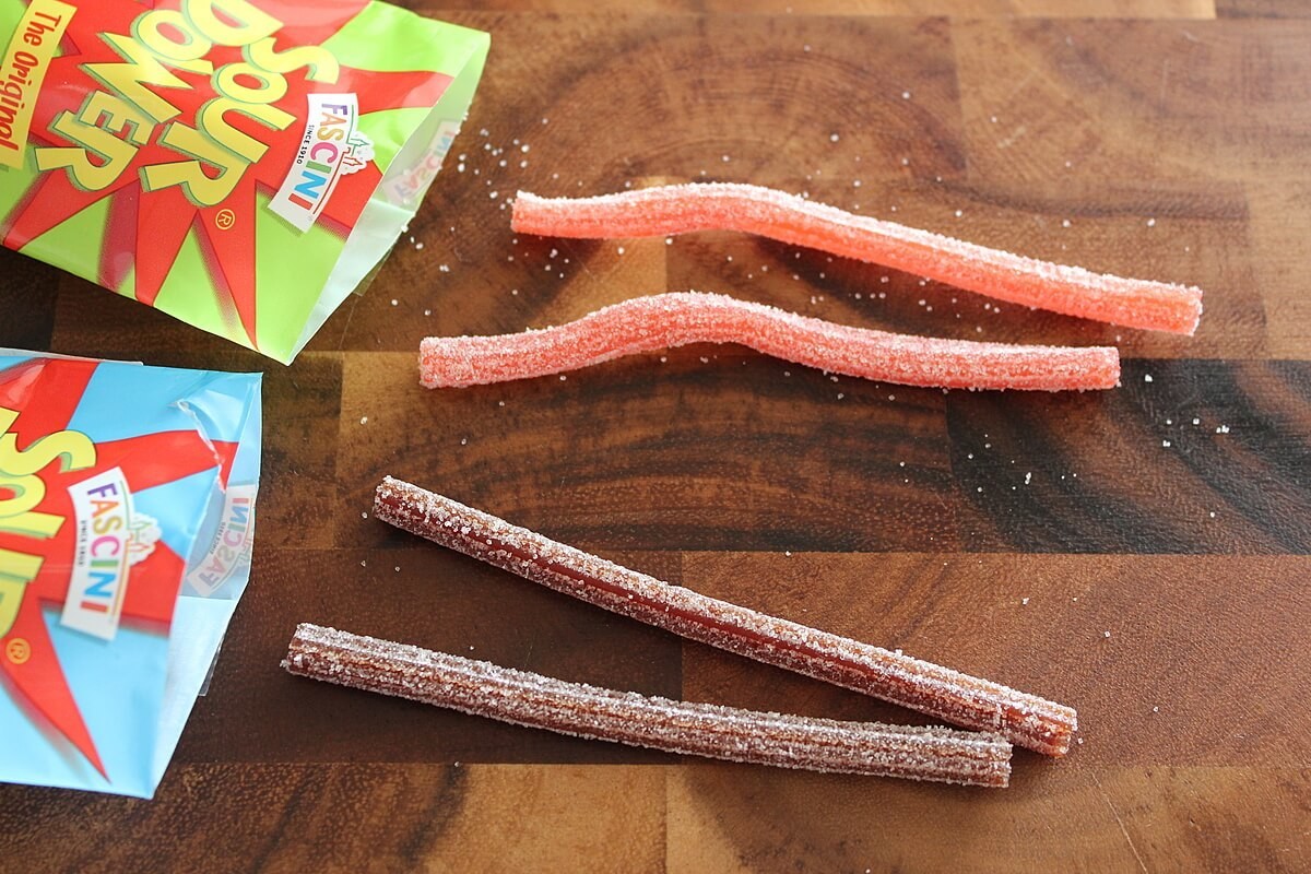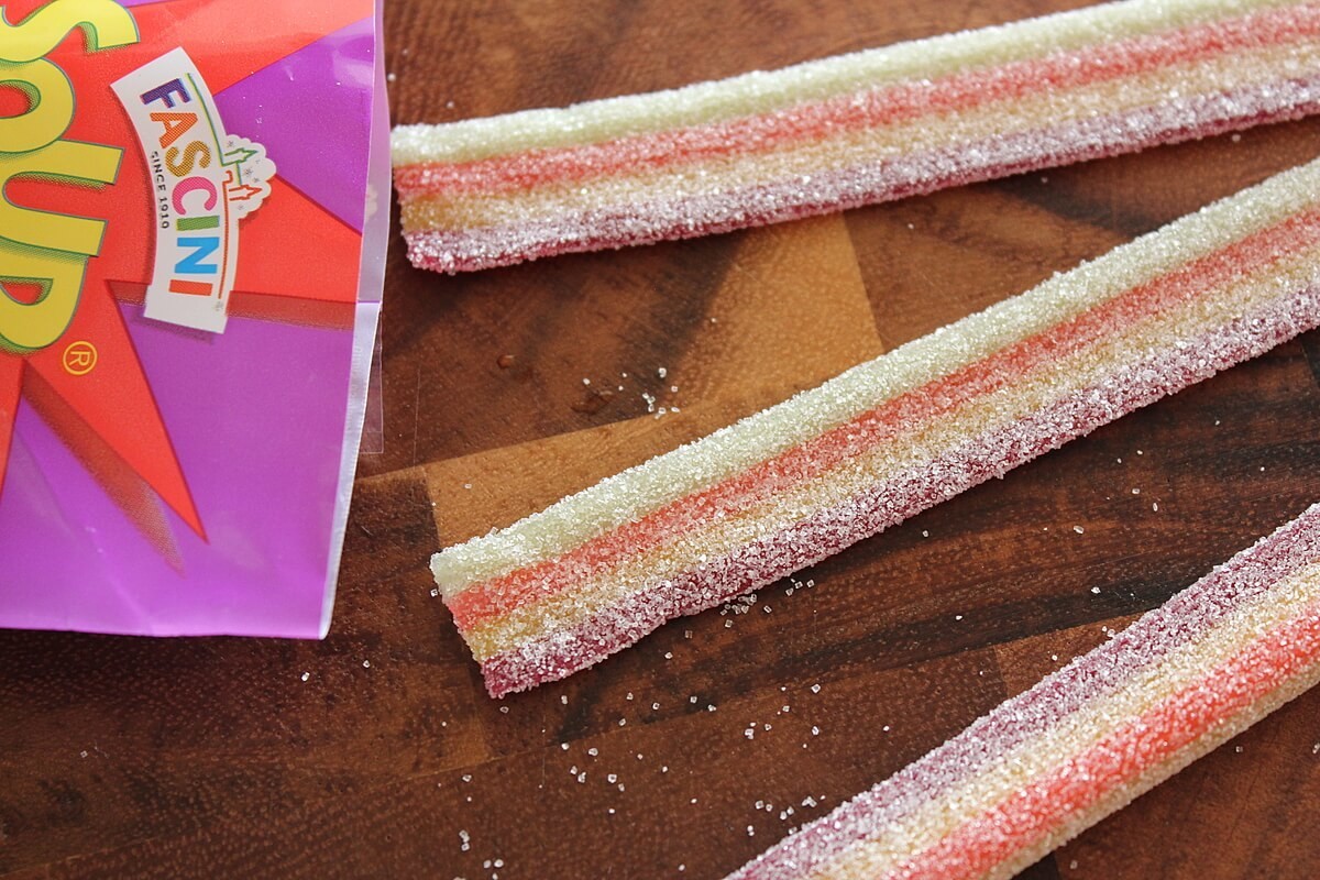 グミについている酸っぱい粉がかなり落ちるので、いただくときには気を付けないといけません。噛み切ろうとすると散らばってしまうので、キッチンばさみでカットしてお皿などに入れていただくことをおすすめします。