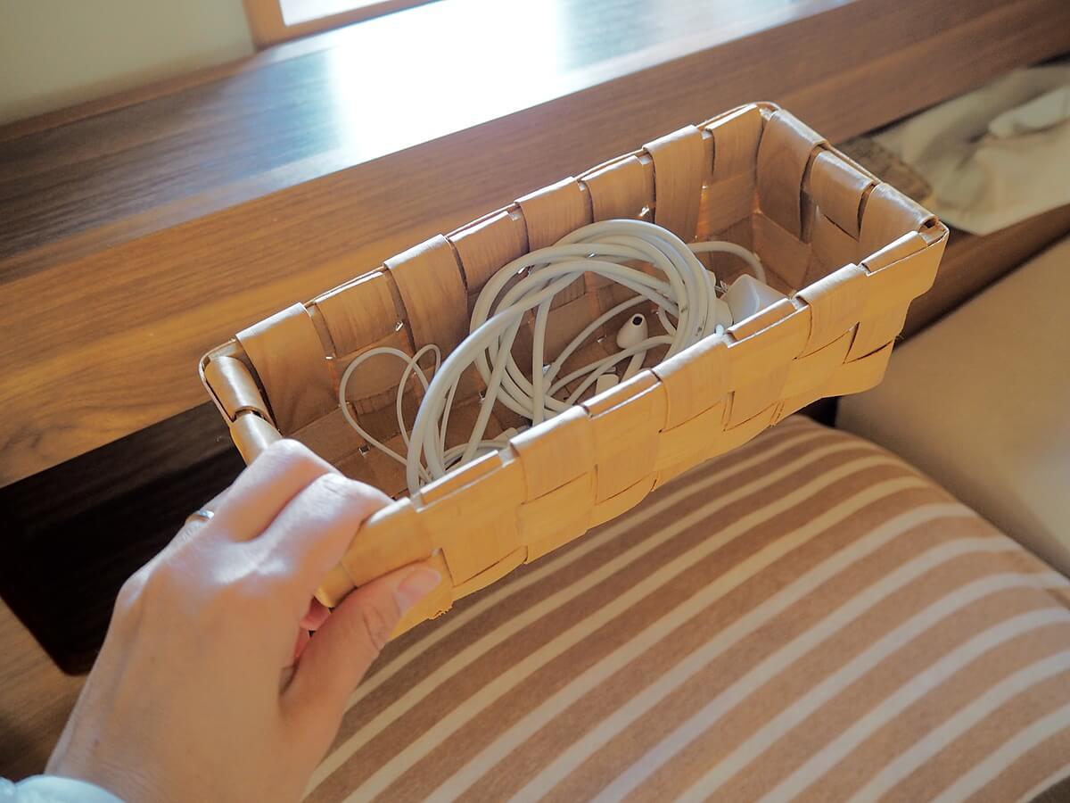 寝室で頻繁に使用するスマホの充電器や、迷子になりやすいイヤホンの収納に使ったり……。